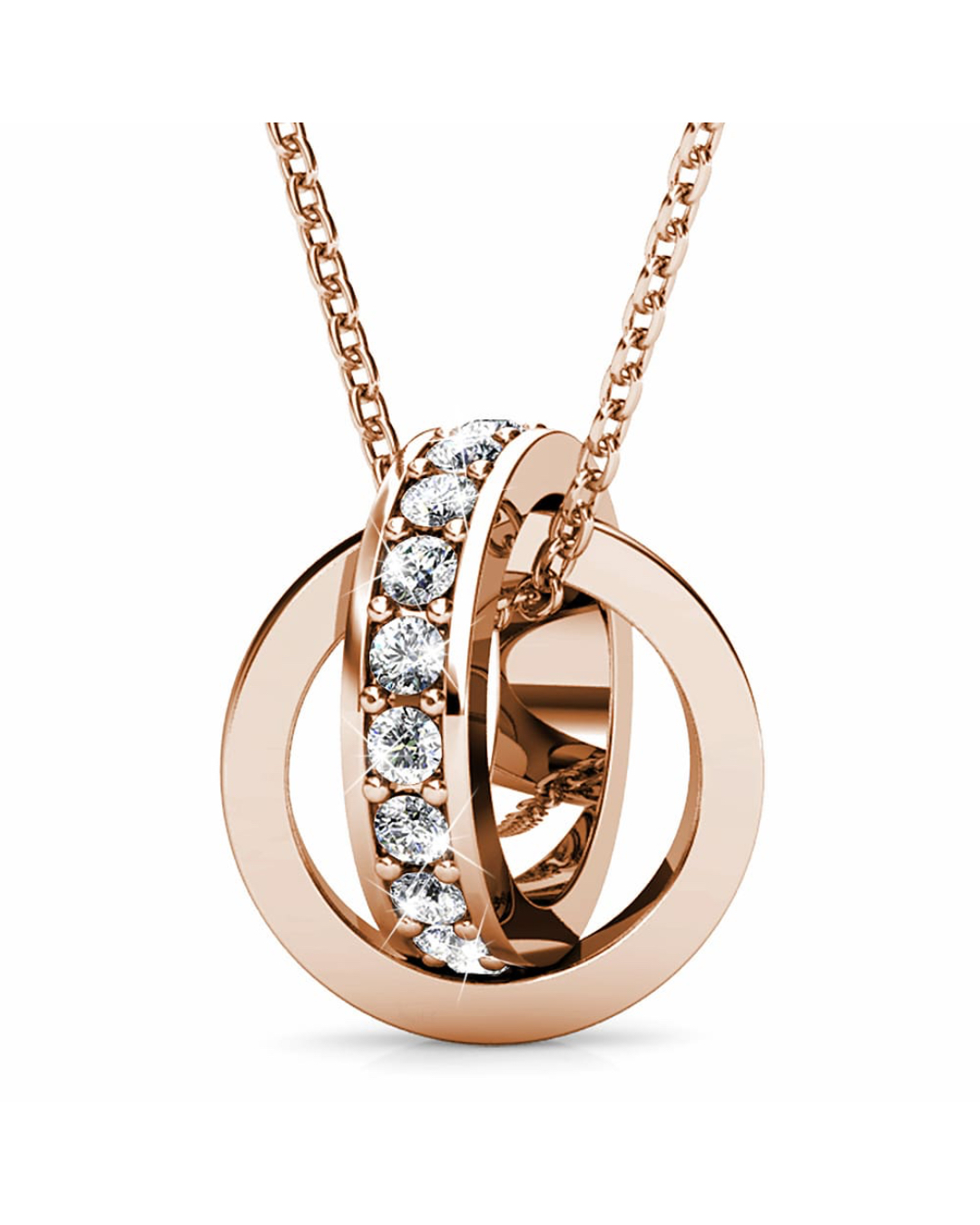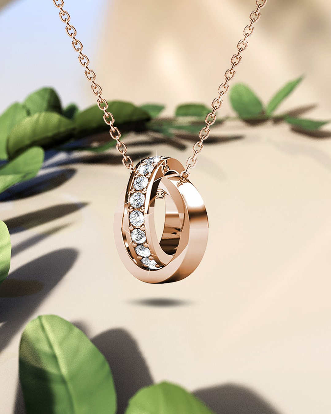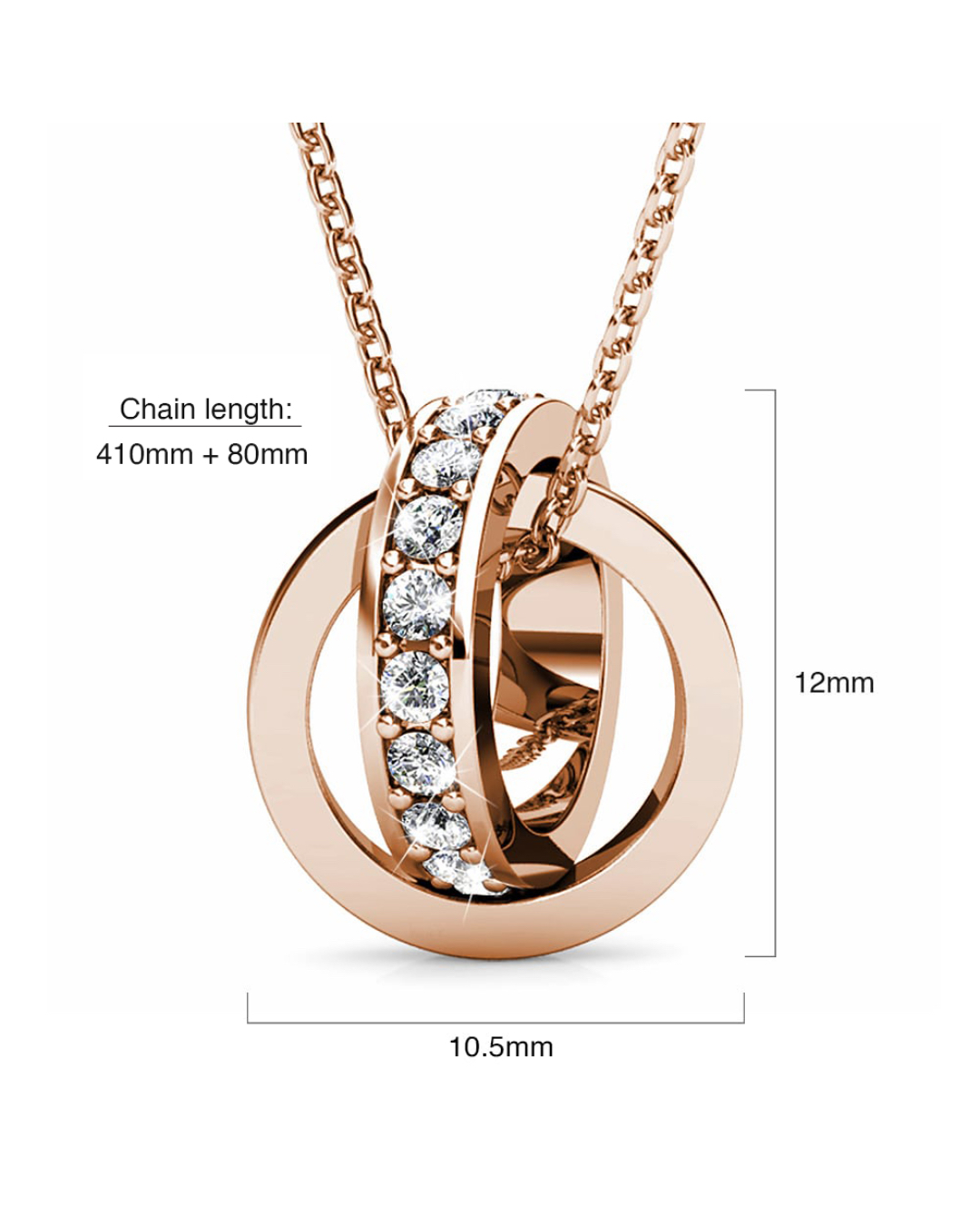 Treat yourself with this contemporary style necklace with gorgeous inter-locking ring pendant adorned with crystals from SWAROVSKI®. Crafted with 18K Rose Gold finish, this fashion-trendy piece will make every occasion special.