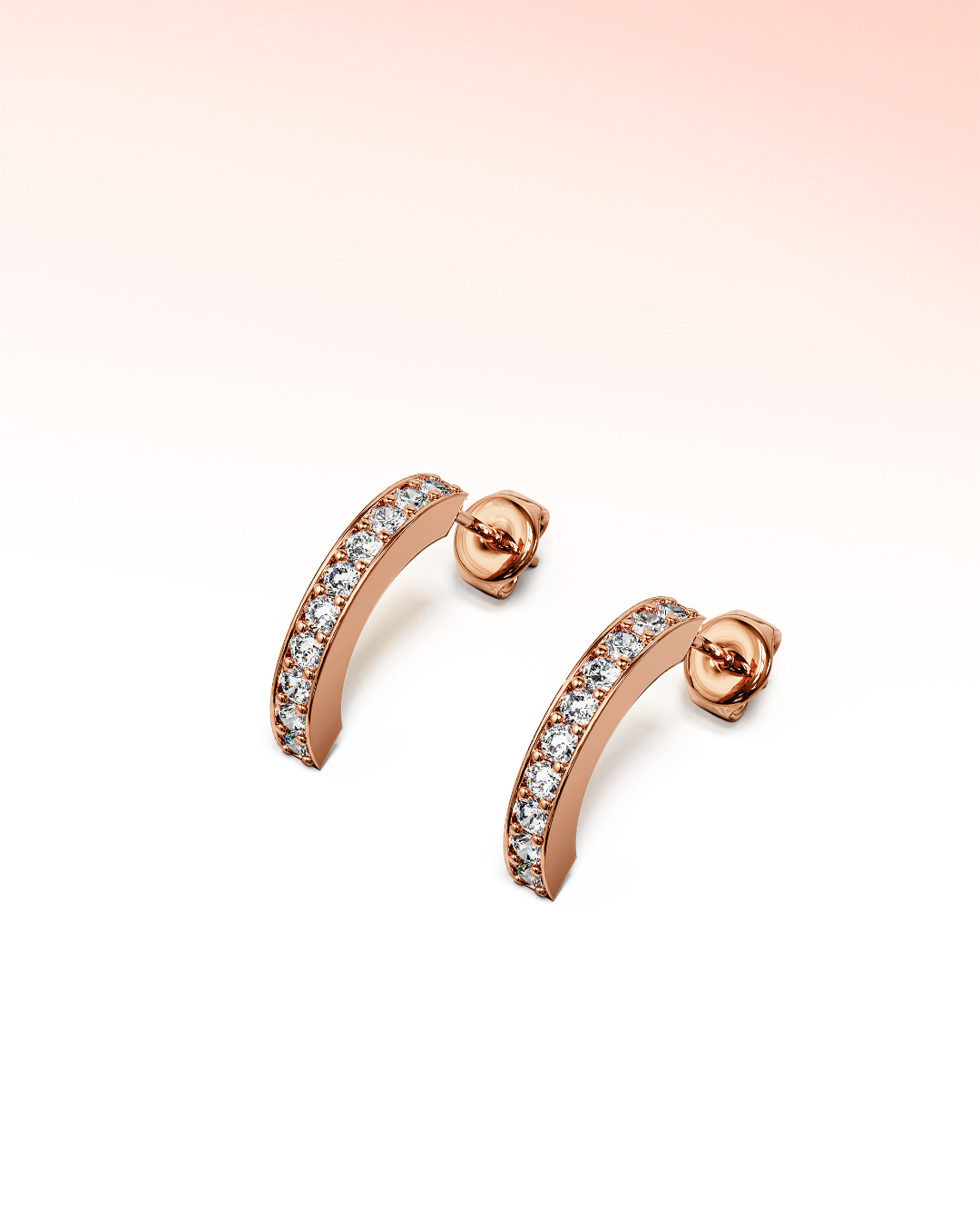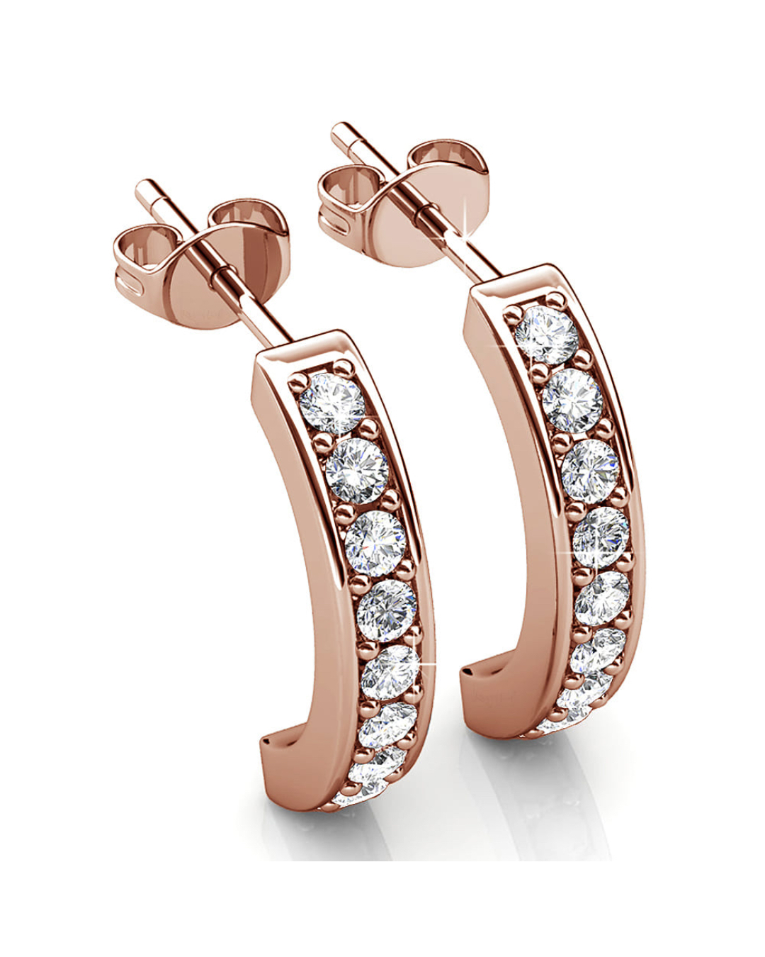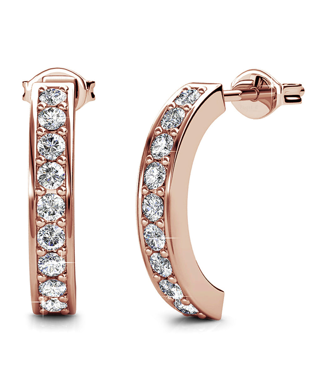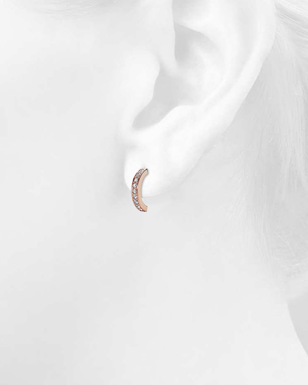 A petite luxury for casual occasions! These graceful and precious Semi Circle Curve Earrings are plated with shiny 18K Rose Gold and Embellished with sparking SWAROVSKI® Crystals. They add the perfect bling for casual occasions.