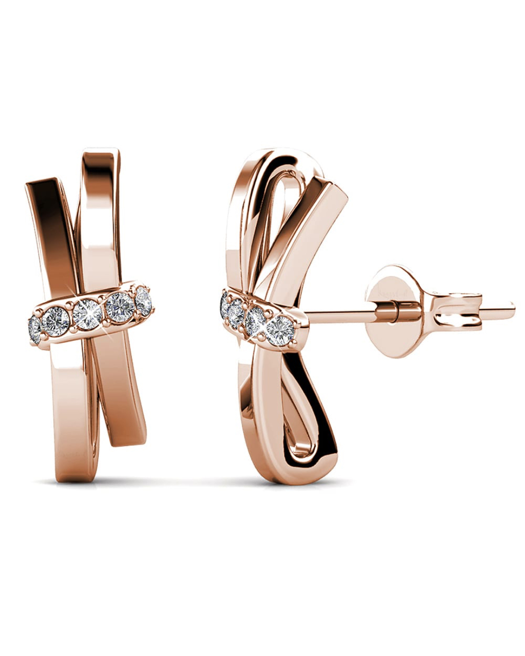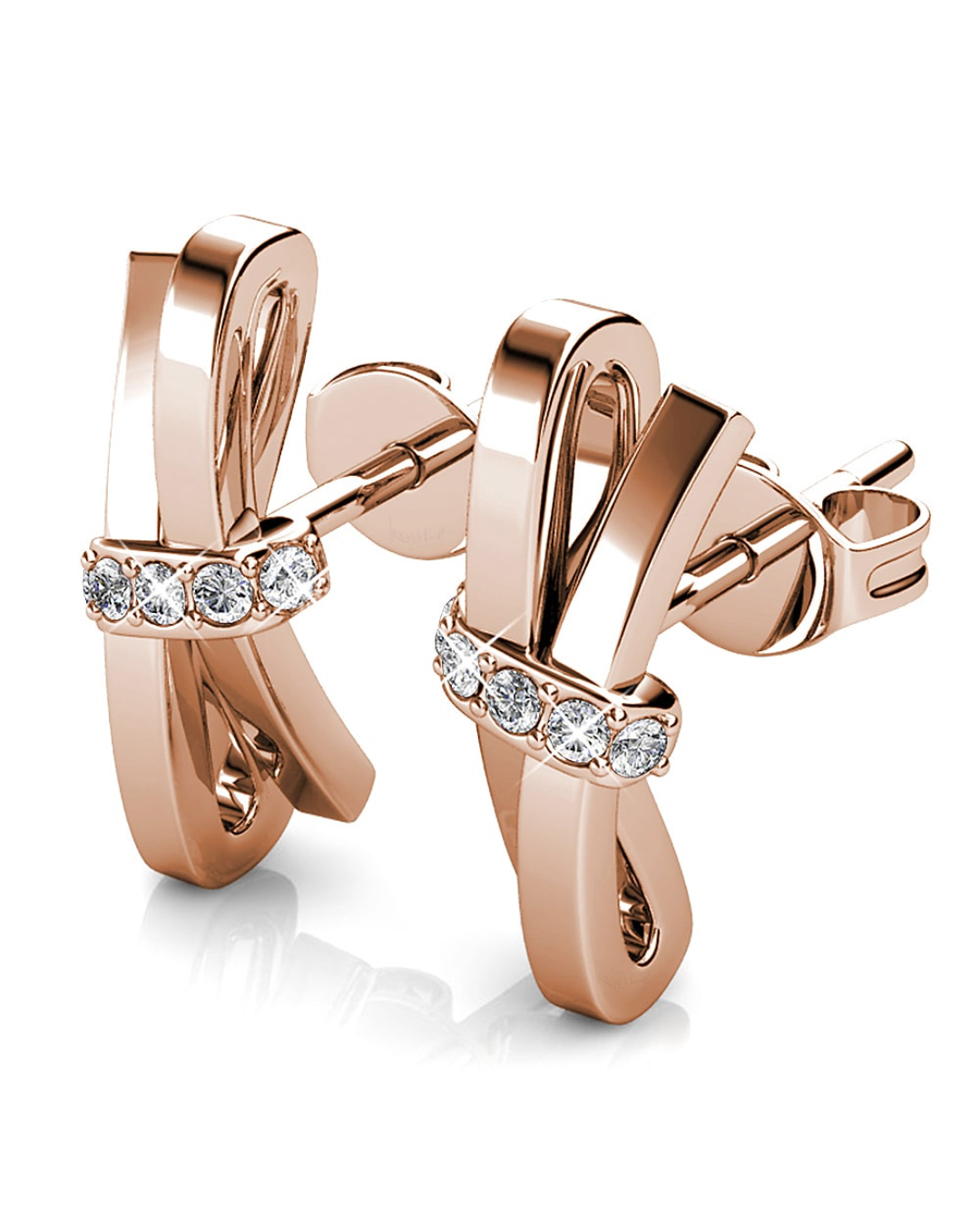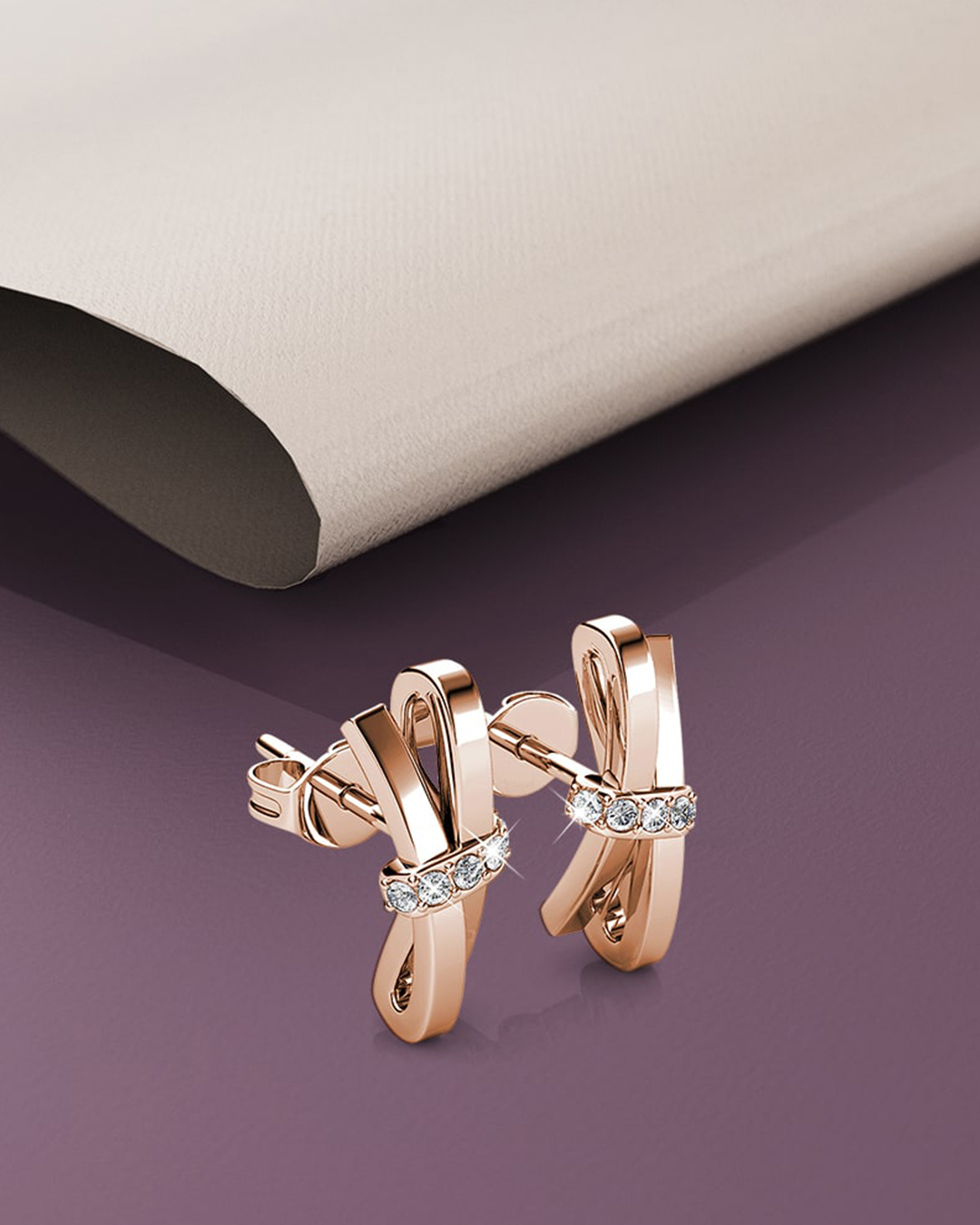Tie up your look with a dazzling final touch with this piece embellished with sparkling Crystals from SWAROVSKI®! Plated with 18K Rose Gold, this piece is definitely a show stopper. Add these unique earrings to any outfit and all eyes will be on you!