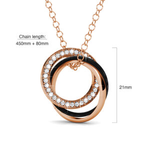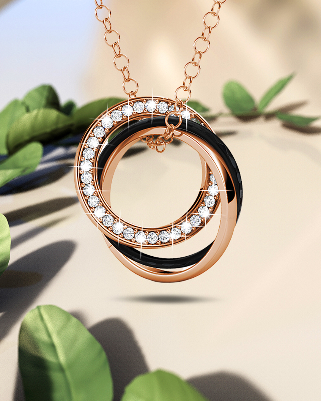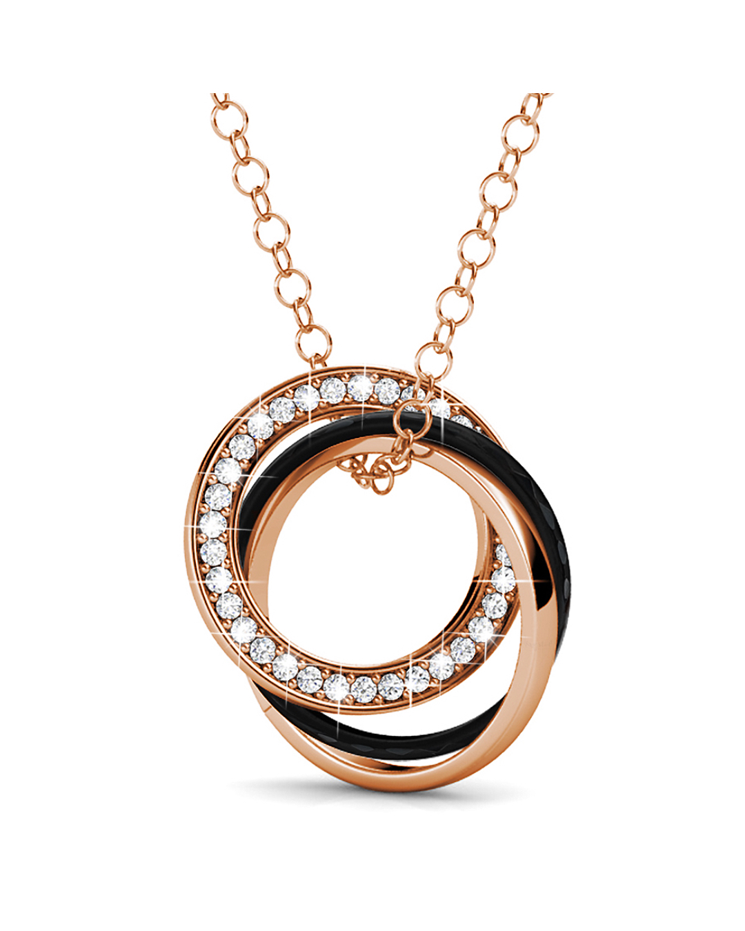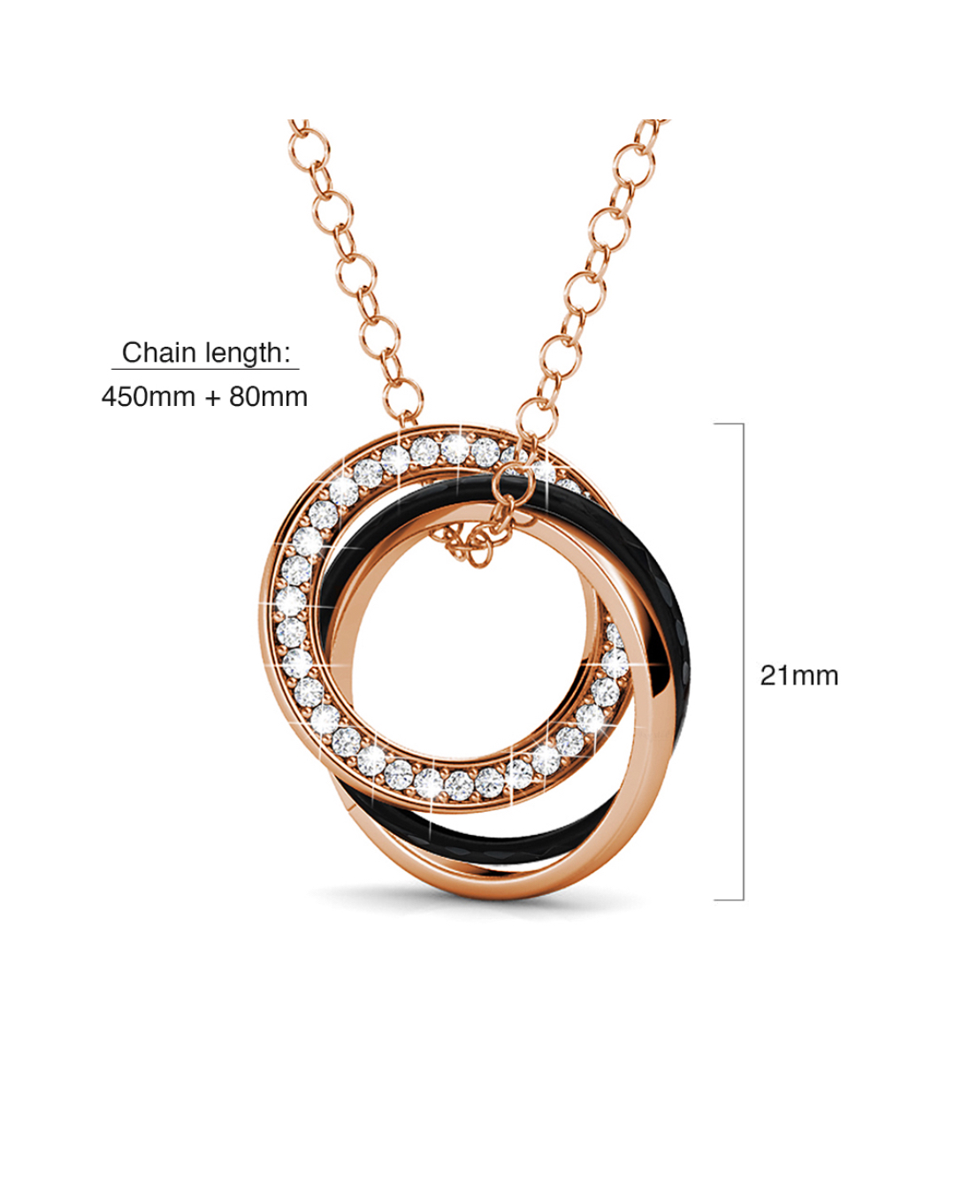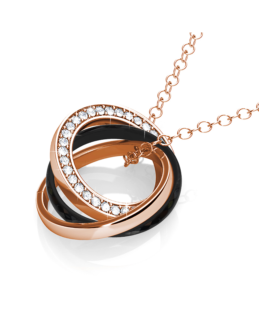 Adorn yourself with this unique style necklace with gorgeous triple interlocking ring pendant decorated with black ceramic ring and adorned with crystals from SWAROVSKI®. Crafted with 18K Rose Gold finish this fashion-trendy piece will make every occasion special.