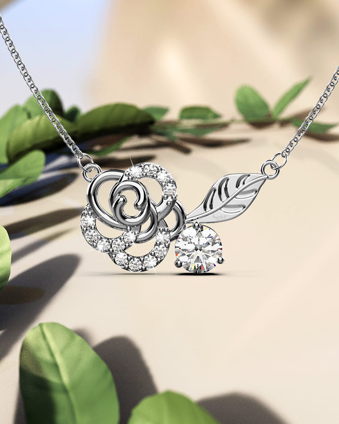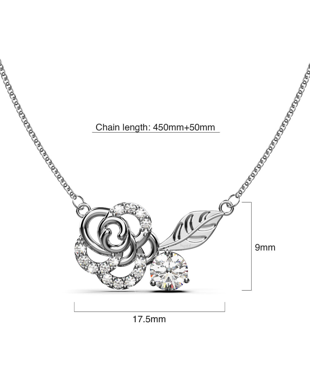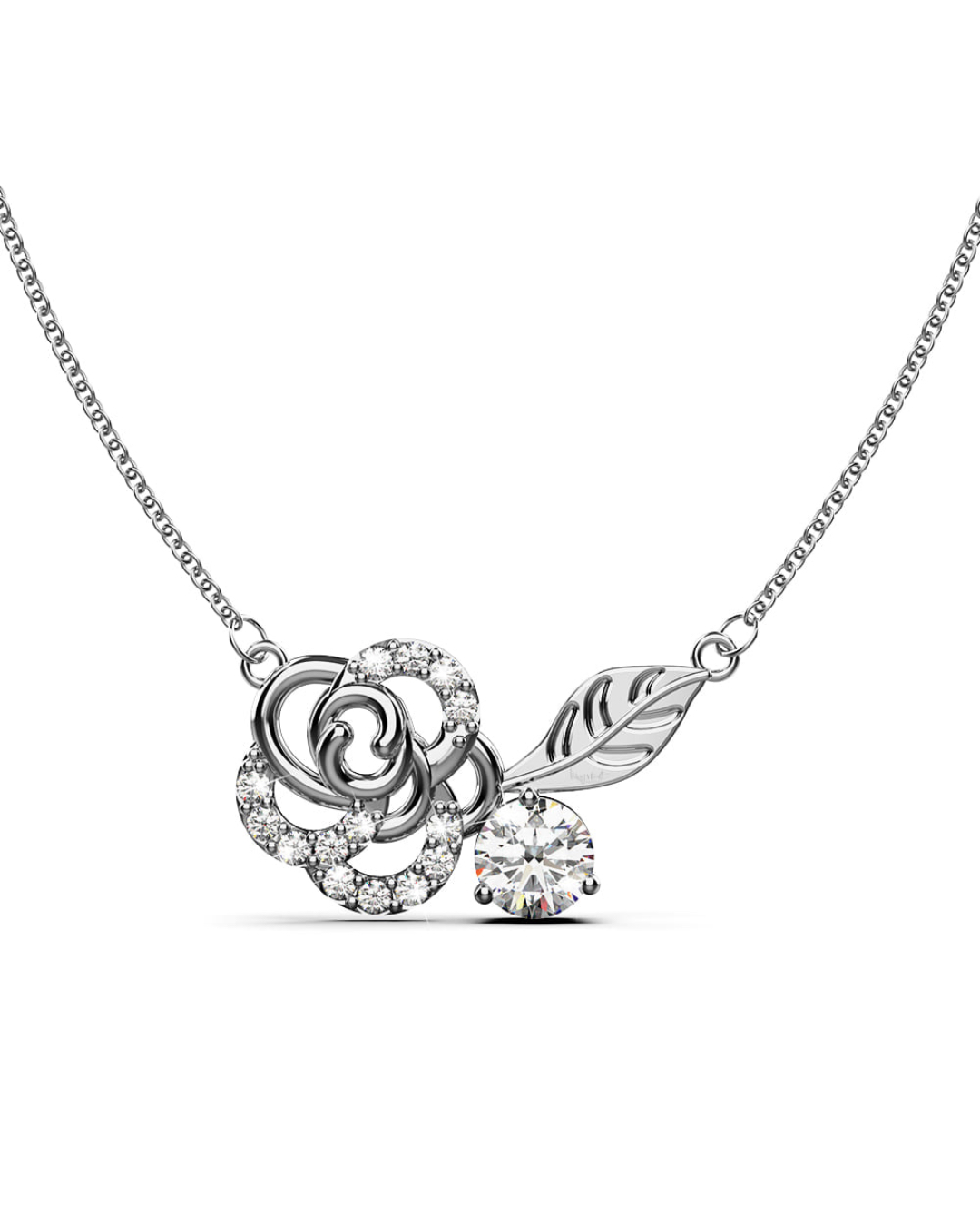 An opulent piece, our Rose Petal Pendant Necklace is the perfect addition to any outfit. Featuring an exquisite and large SWAROVSKI® crystal pendant in the shape of a rose, attached to the luxurious 18ct white gold plated necklace, this piece is great for both casual and formal occasions.
