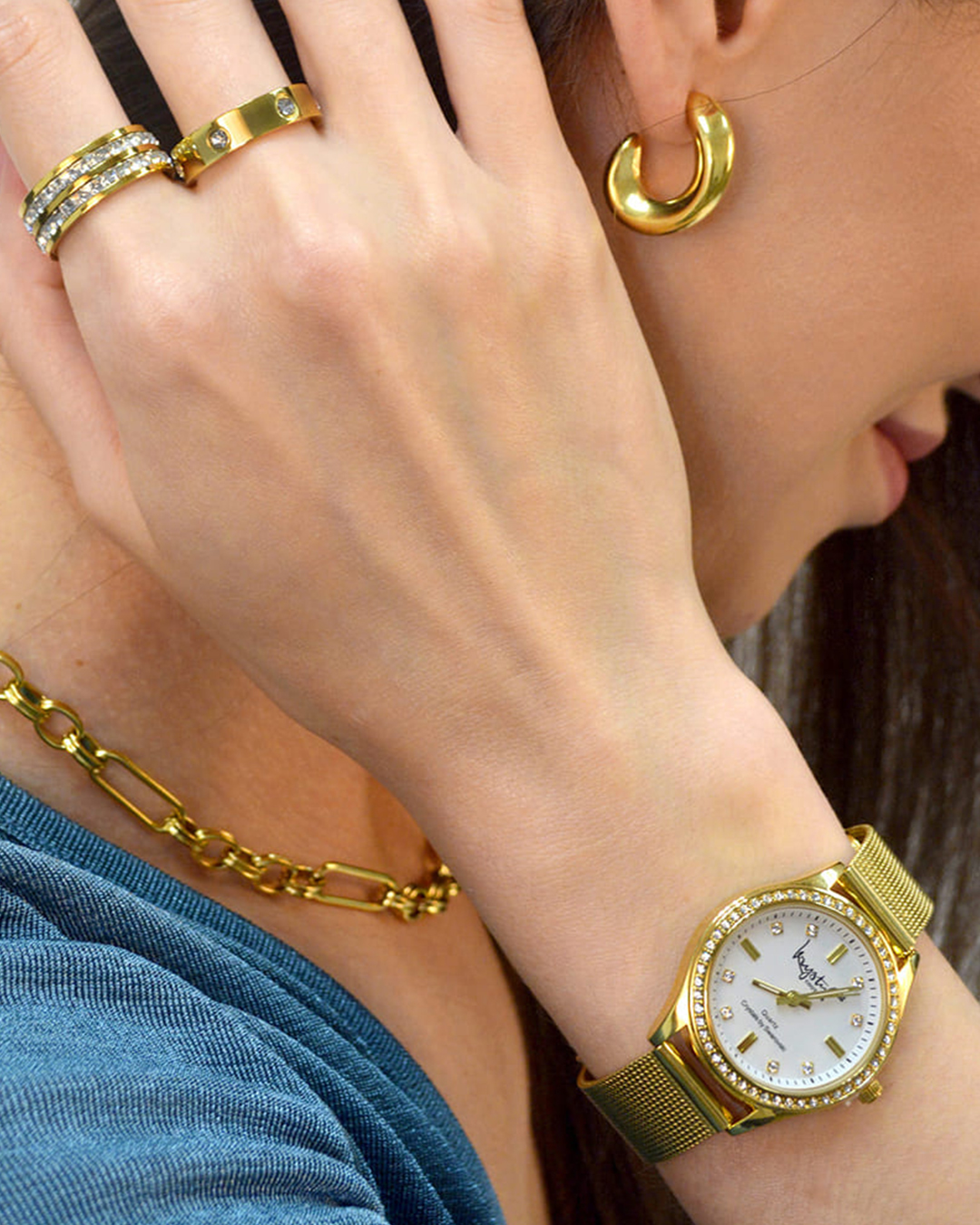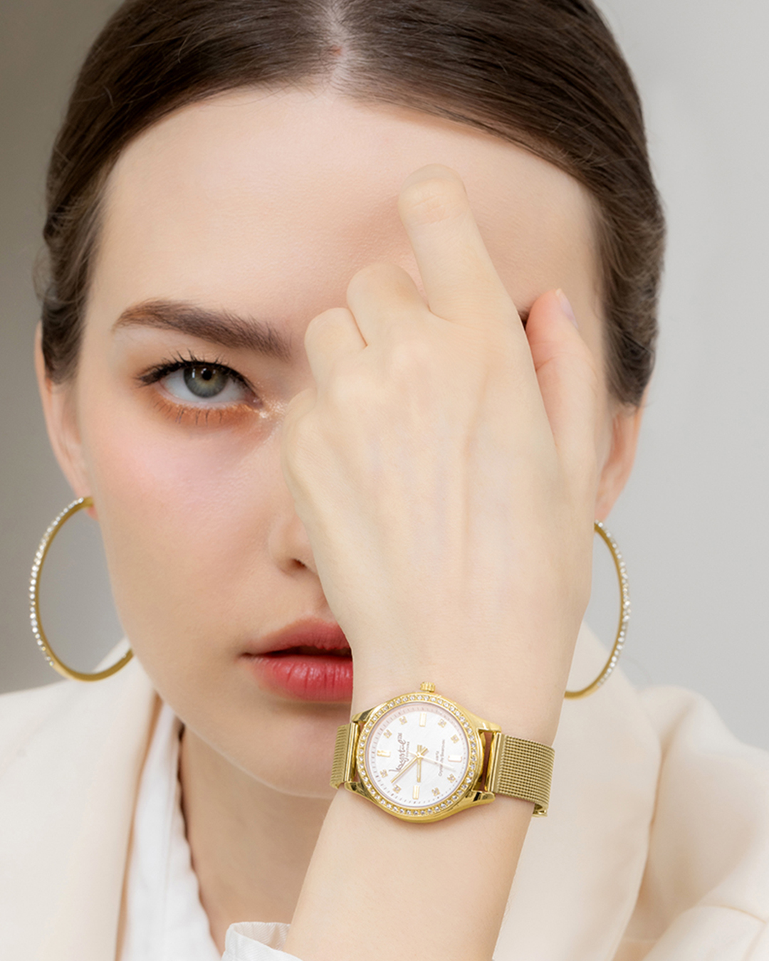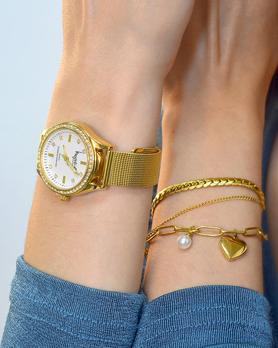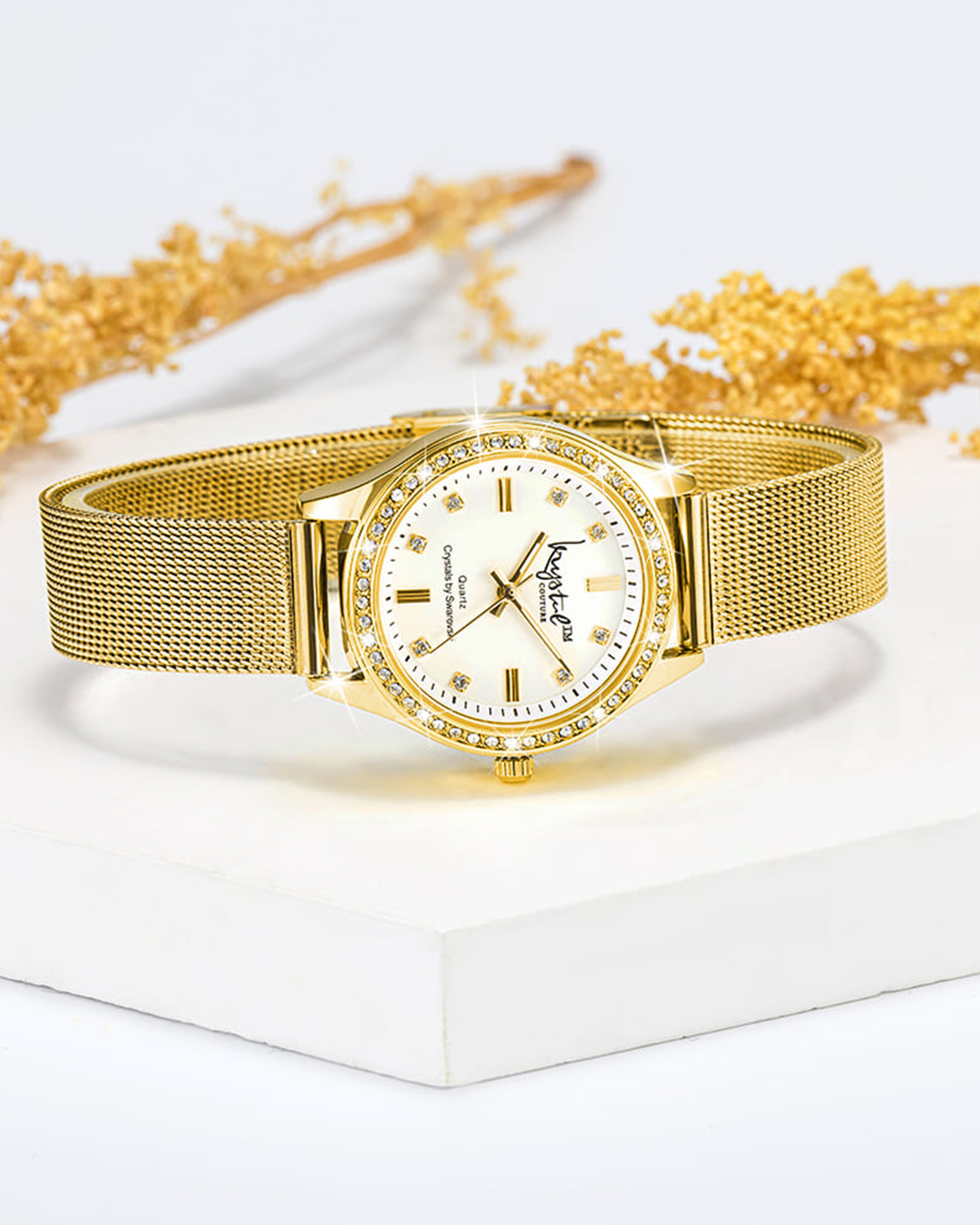 It’s a lot to take in, we know. The last thing you think you need is a new watch, but trust us, the Sensational Lux Gold on White Watch Embellished With SWAROVSKI® Crystals is going to become your new best friend. Equipped with a 30M waterproof alloy, a secure adjustable snap closure and powered by a distinctive quartz movement; this well-crafted Gold plated stainless steel and beautiful white face watch will surely bring any of your outfit to life!