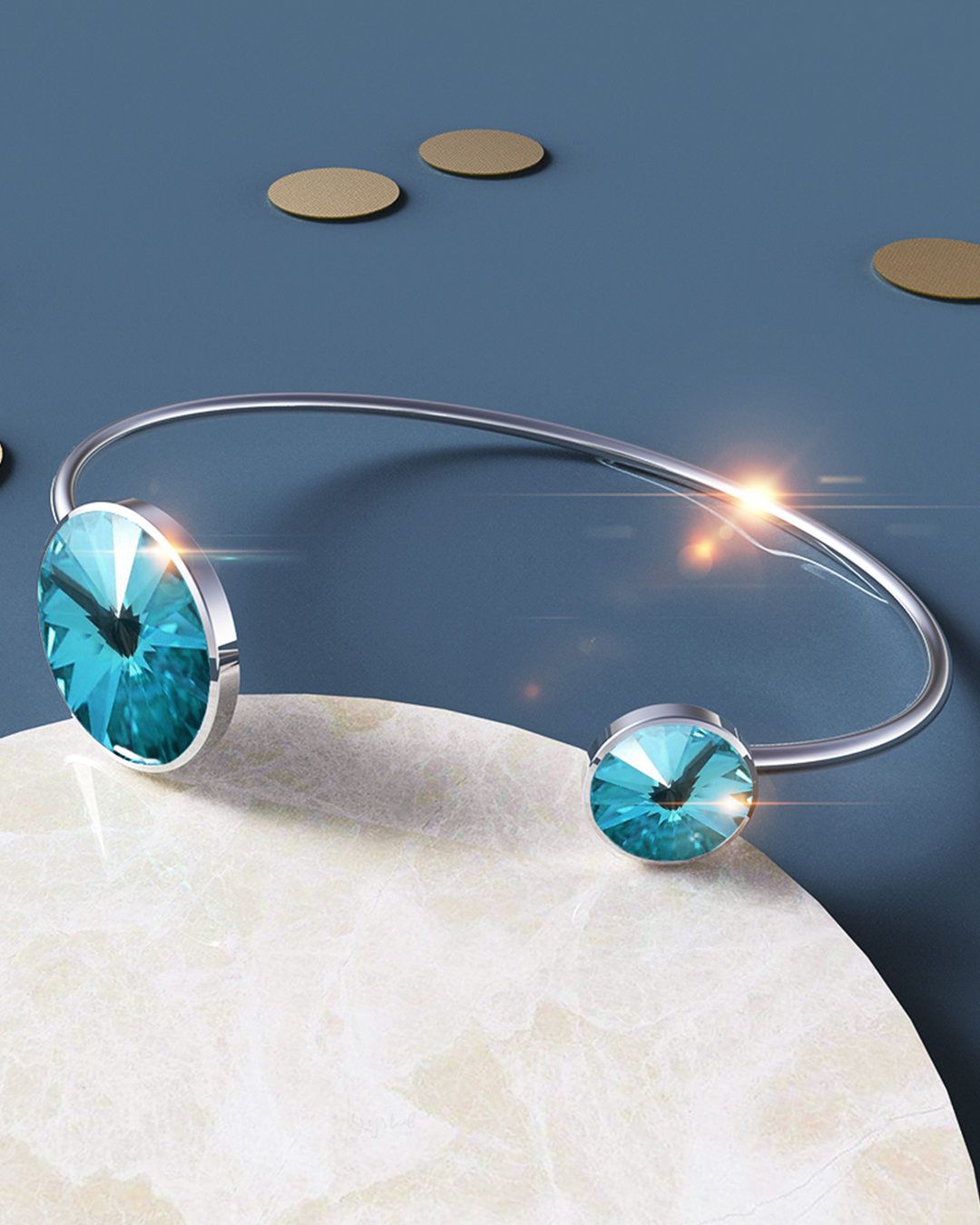 The eye-catching beauty of this open bangle is embellished with sparkling Crystals made with SWAROVSKI® elements. This jewelry is crafted of 18K White Gold plated alloy with high polish finish. Mix and match these amazing pieces with your favorite outfits.