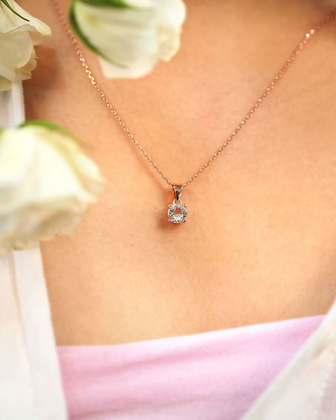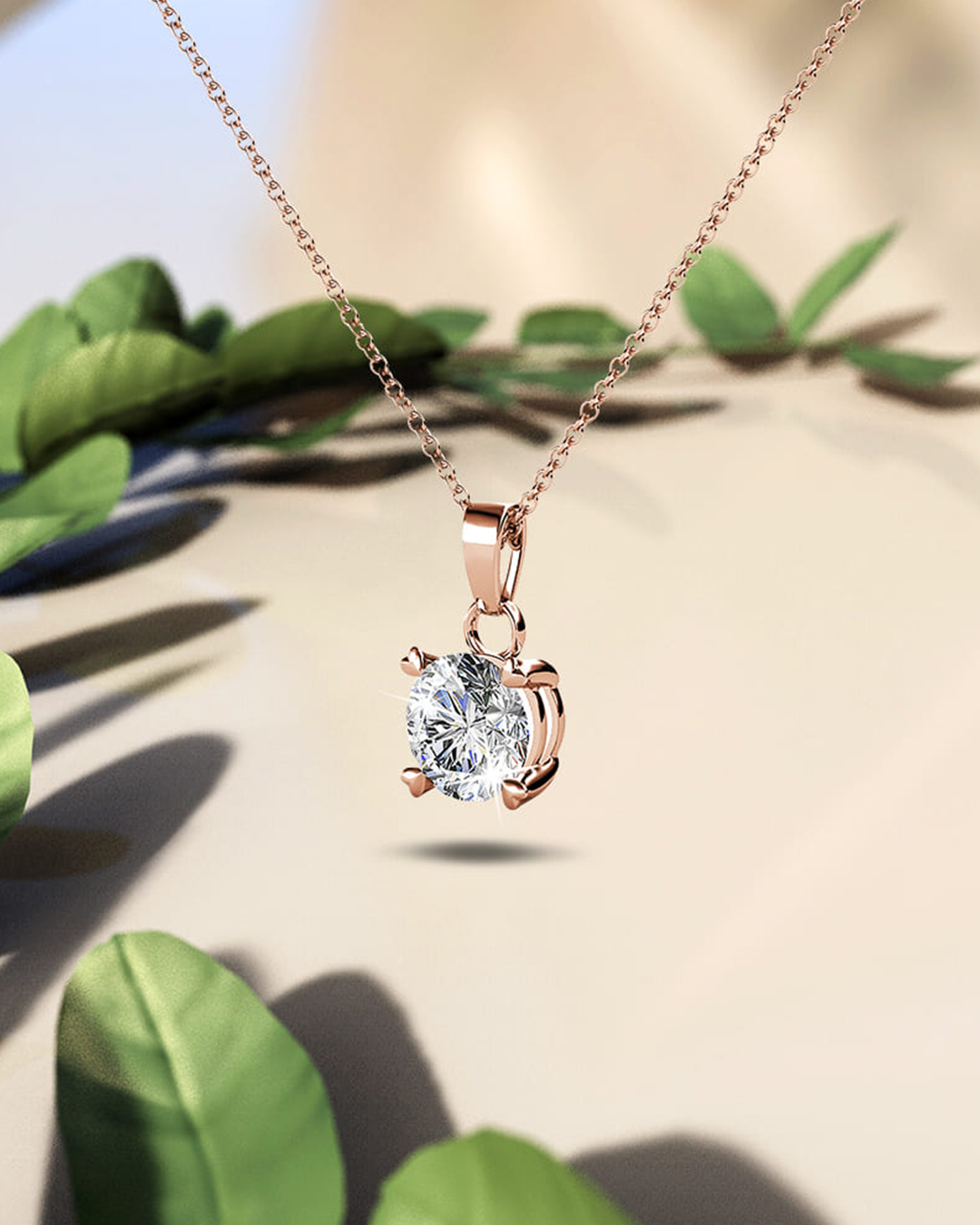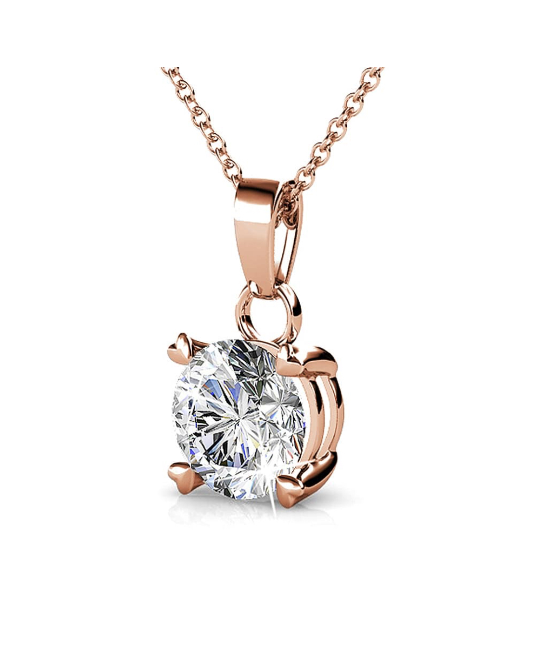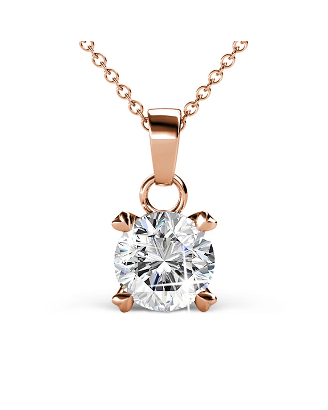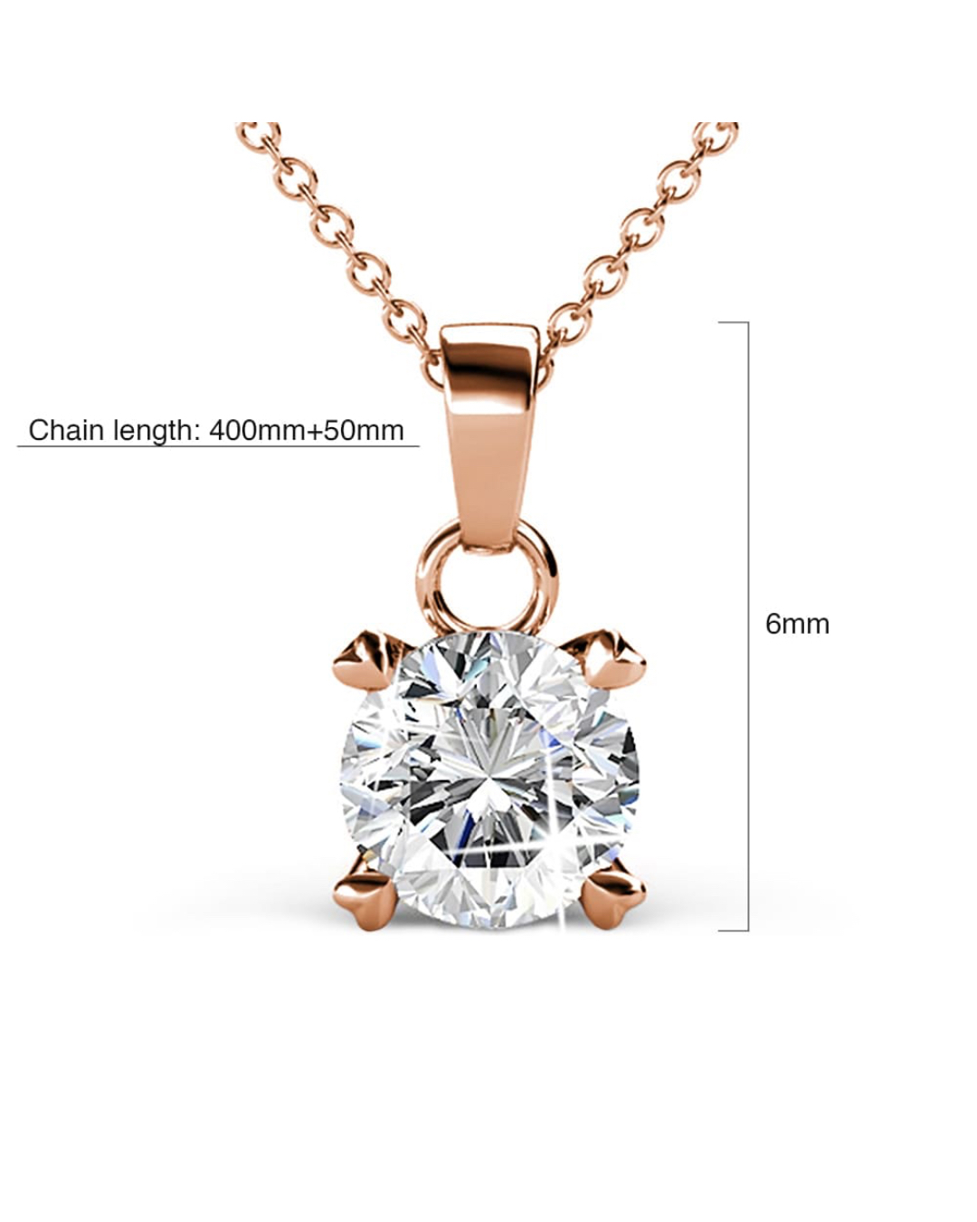 Wear the look of classic elegance with this lovely solitaire necklace featuring Crystals from SWAROVSKI® . This necklace showcases a round-cut crystal measuring 6mm in diameter, prong set in 18K Rose Gold plated alloy, extra coated for long lasting shine. A graceful & elegant piece