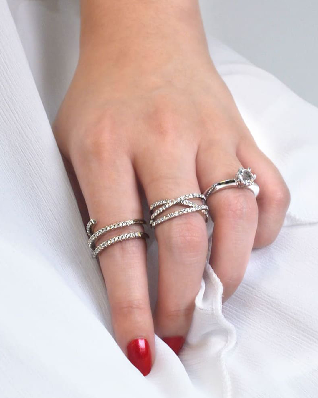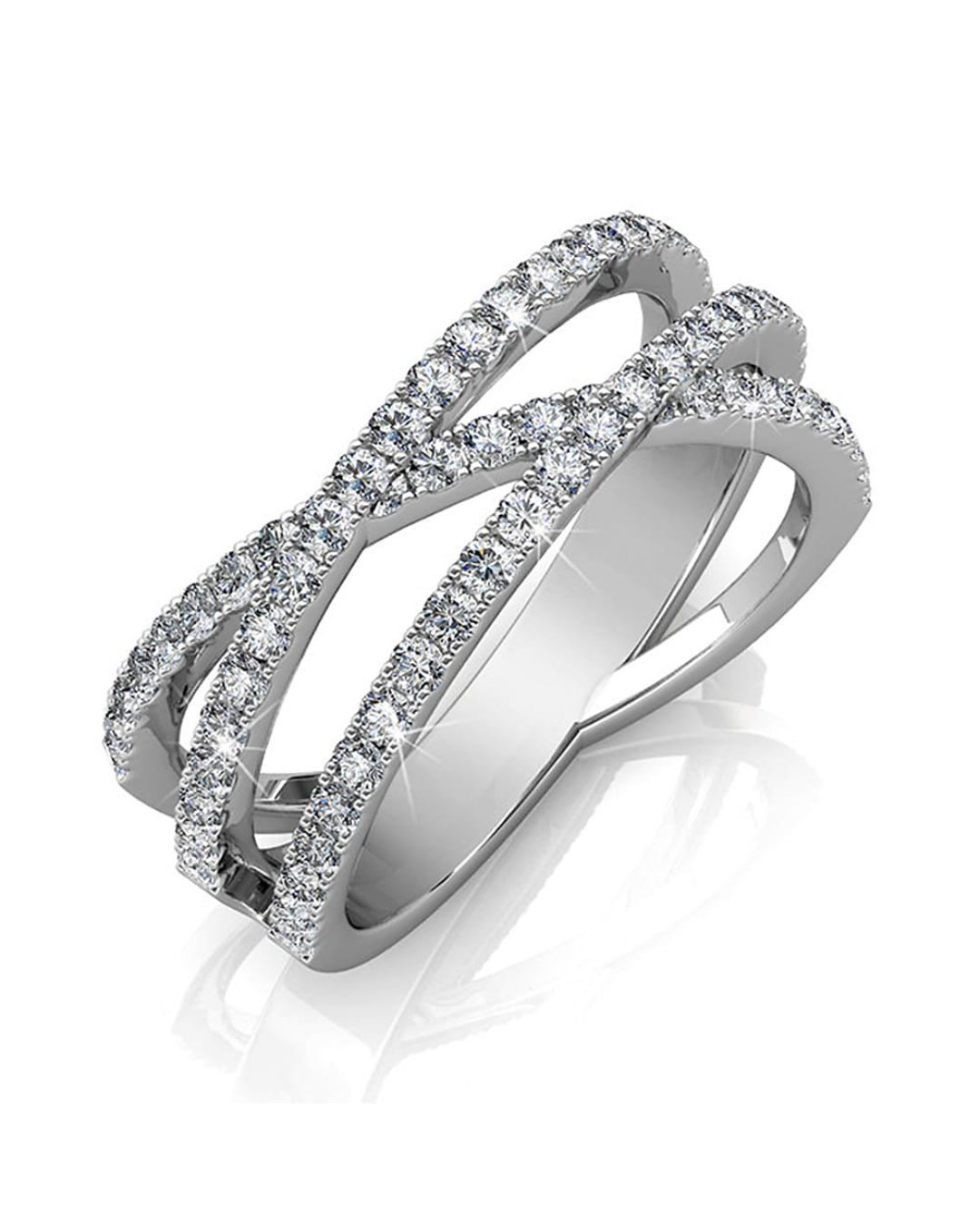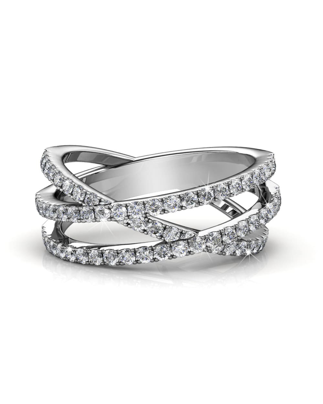 Showcase your love and loyalty when you present this lovely ring with half of the band embellished with brilliant Crystals from SWAROVSKI® . This ring is made of 18K White Gold plated alloy, extra coated for long lasting shine.