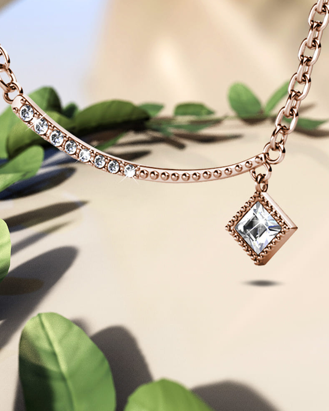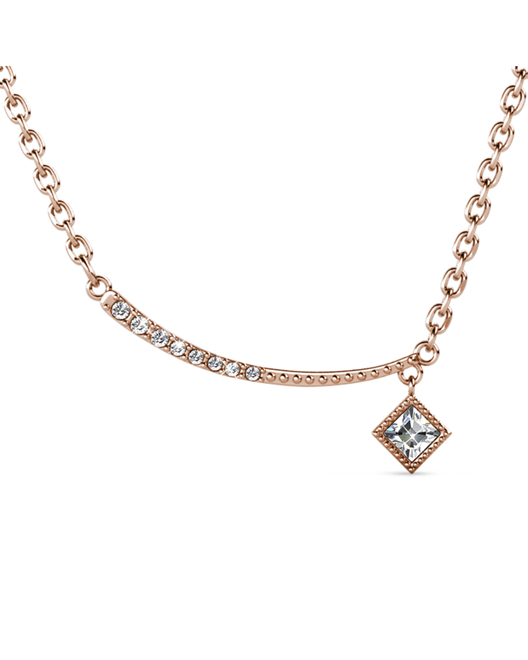 A stunning and sophisticated piece, this pendant necklace is sure to turn heads and spark conversation wherever you go! The sparkle of the embellished SWAROVSKI® crystals adds a glamorous luminous effect to the design, whilst the 18ct rose gold plating completes this look with its luxurious shine that demands attention.