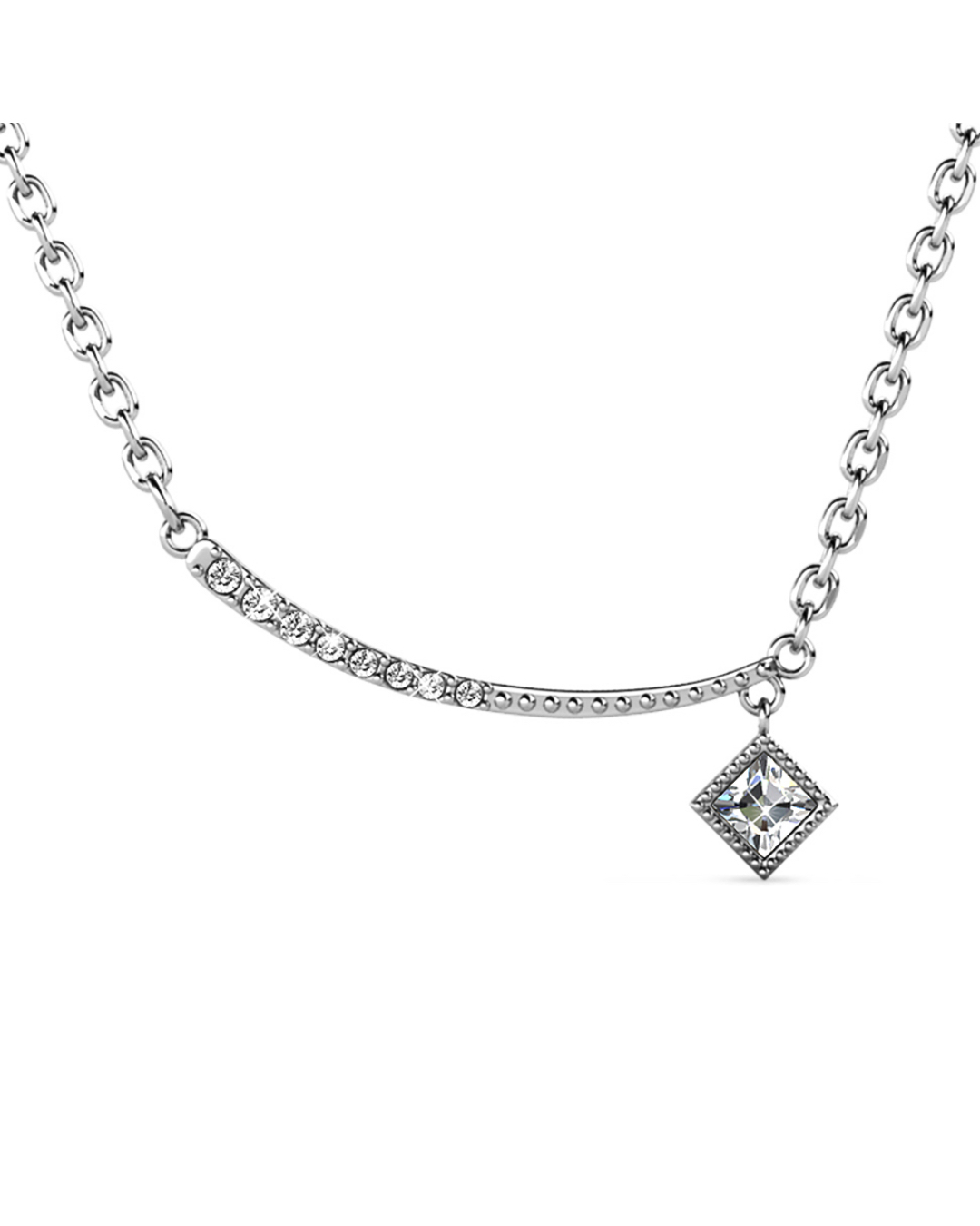 A stunning and sophisticated piece, this pendant necklace is sure to turn heads and spark conversation wherever you go! The sparkle of the embellished SWAROVSKI® crystals adds a glamorous luminous effect to the design, whilst the 18ct white gold plating completes this look with its luxurious shine that demands attention.