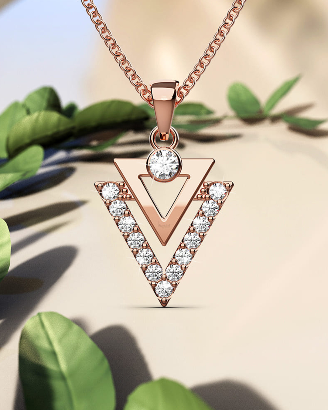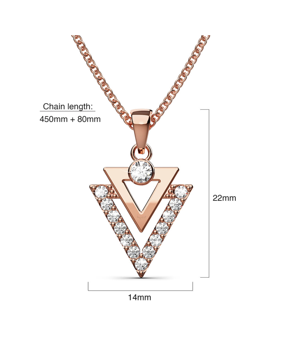 This mesmerising necklace will be one of the most versatile pieces in your jewellery collection. Its glamorous 18K Rose Gold plated triangles are adorned with beautiful Crystals from SWAROVSKI®, giving it a striking statement of its own whilst also looking lovely when layered with other necklaces. The Trilateral Necklace can be dressed up or down and worn for work, brunch or even dinner. Spoil yourself and add this stunner to your accessories collection today!