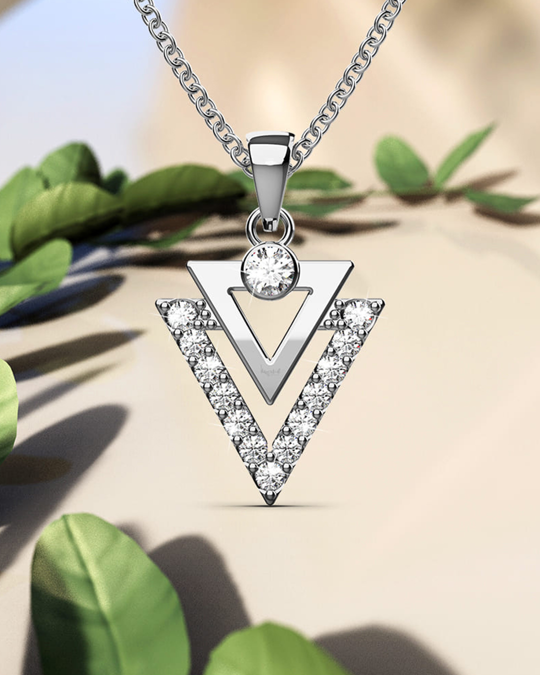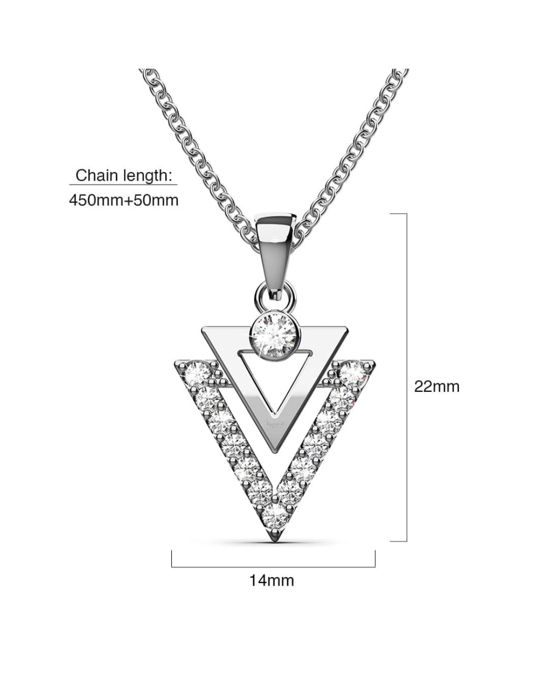 This mesmerising necklace will be one of the most versatile pieces in your jewellery collection. Its glamorous 18K White Gold plated triangles are adorned with beautiful Crystals from SWAROVSKI®, giving it a striking statement of its own whilst also looking lovely when layered with other necklaces. The Trilateral Necklace can be dressed up or down and worn for work, brunch or even dinner. Spoil yourself and add this stunner to your accessories collection today!