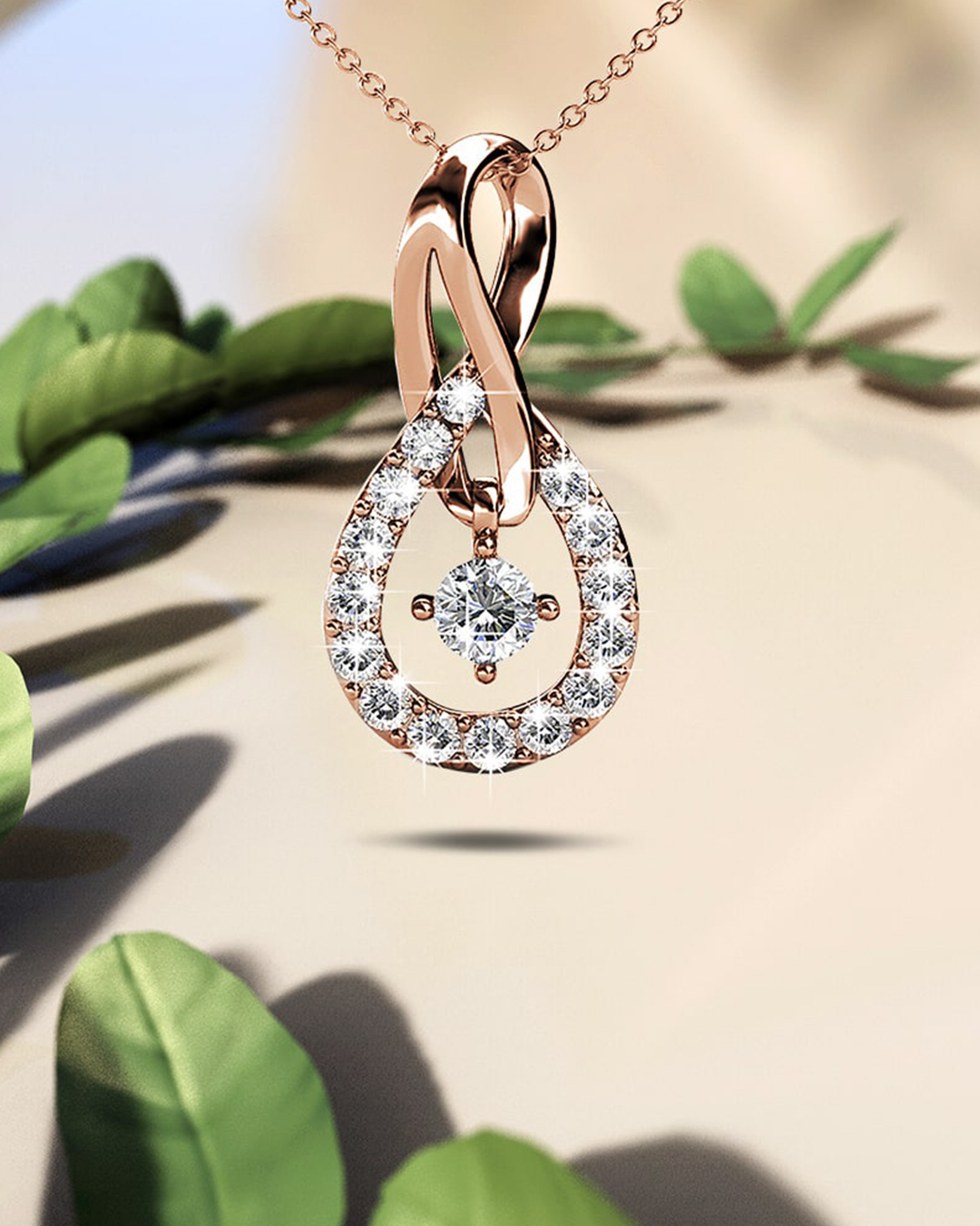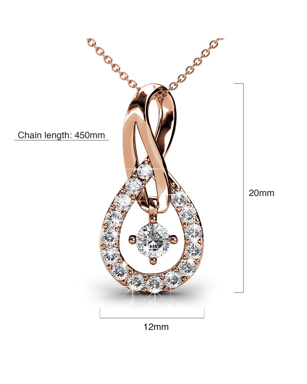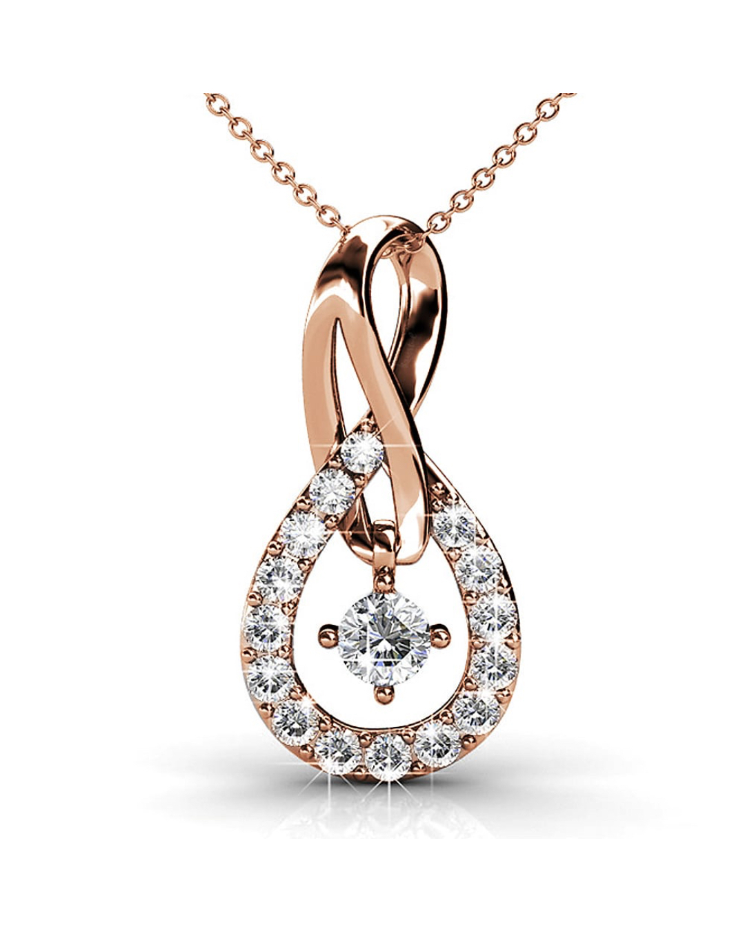 Complete your look with this exquisite necklace featuring Crystals from SWAROVSKI® the pendant is designed with tear drop frame with round-cut, prong-set centre stone along with 15 channel-set crystals all made with SWAROVSKI® Elements.This necklace is crafted of highly polished 18K Rose Gold plating and is worn with 17-inch chain.