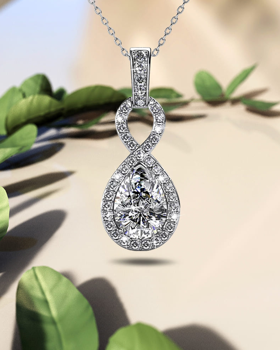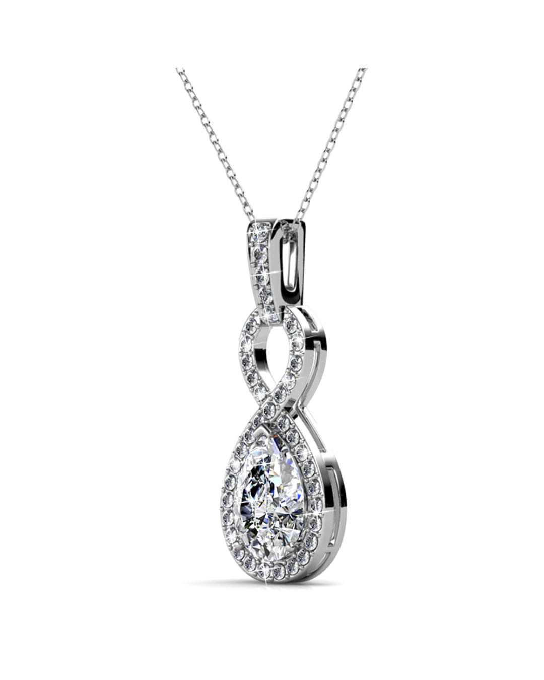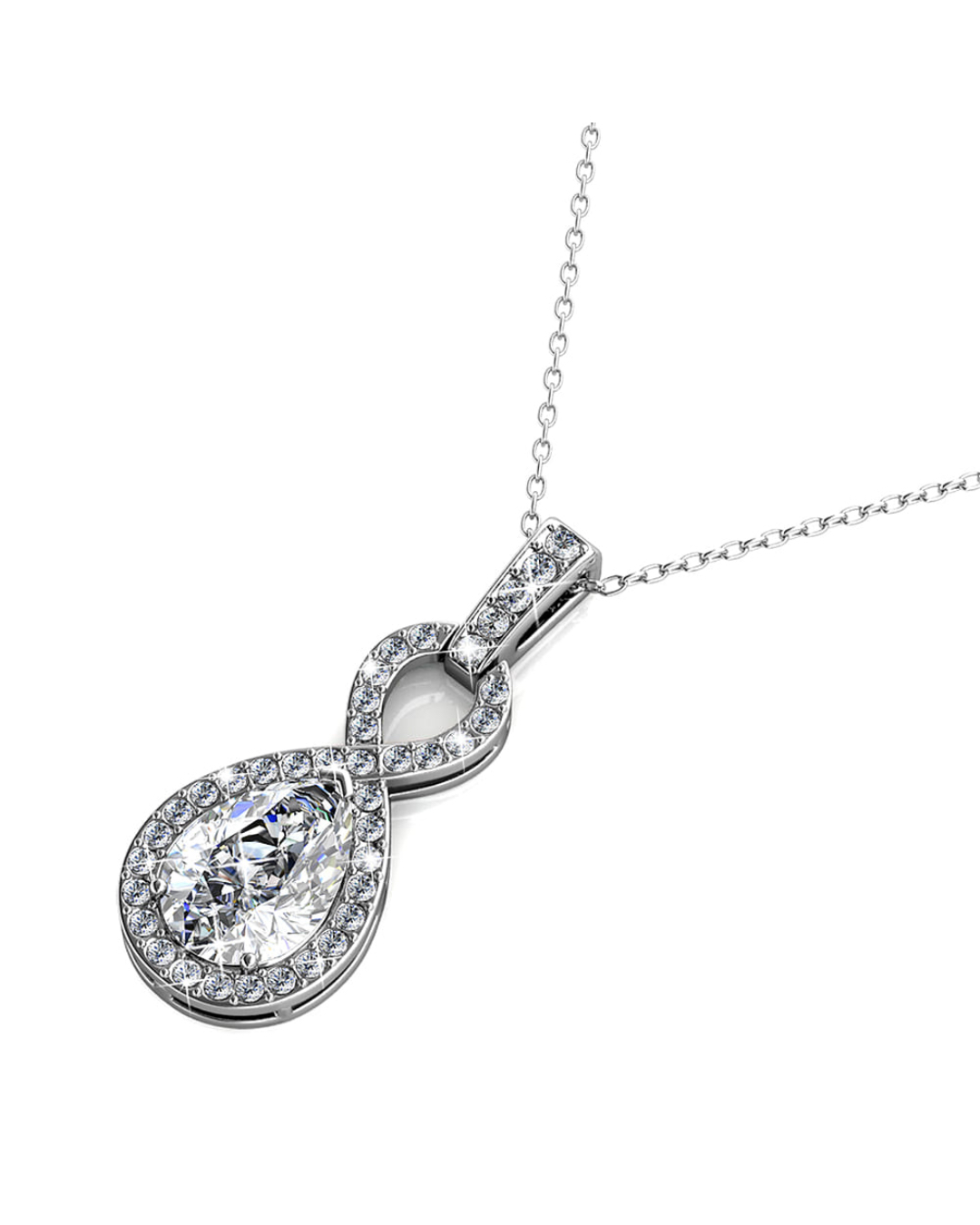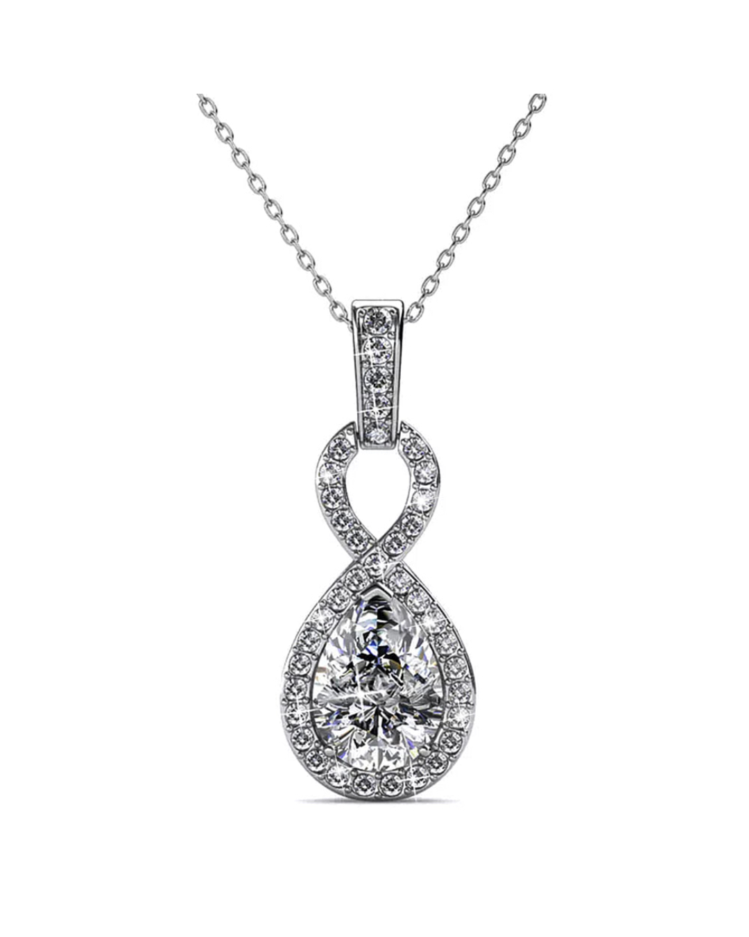 Be the first to review “White Gold Eternal Twist Drop Pendant Necklace Embellished With SWAROVSKI® Crystals”