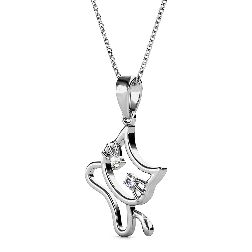 A cute yet fierce like a feline! This piece is perfect as gift for any occasion! A dainty cat sculpt decorated with crystals from SWAROVSKI® and coated with 18K White Gold plating for classy look.