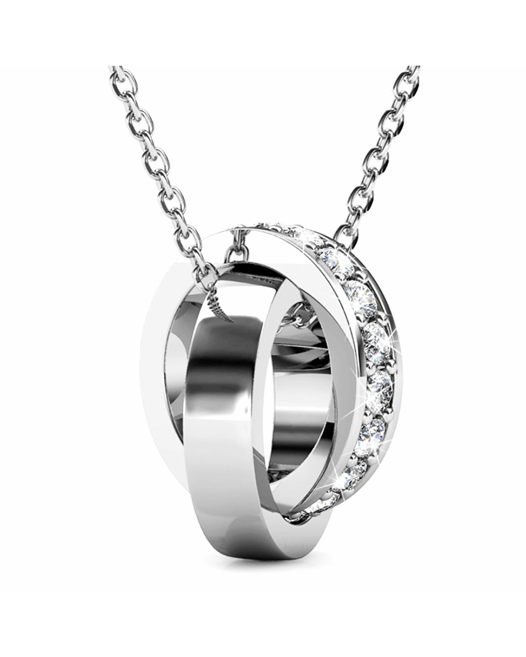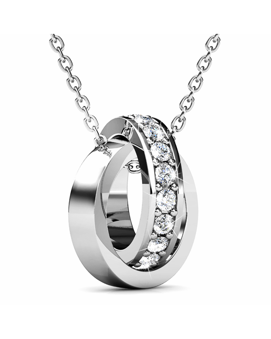 Treat yourself with this contemporary style necklace with gorgeous inter-locking ring pendant adorned with crystals from SWAROVSKI®. Crafted with 18K White Gold finish, this fashion-trendy piece will make every occasion special.
